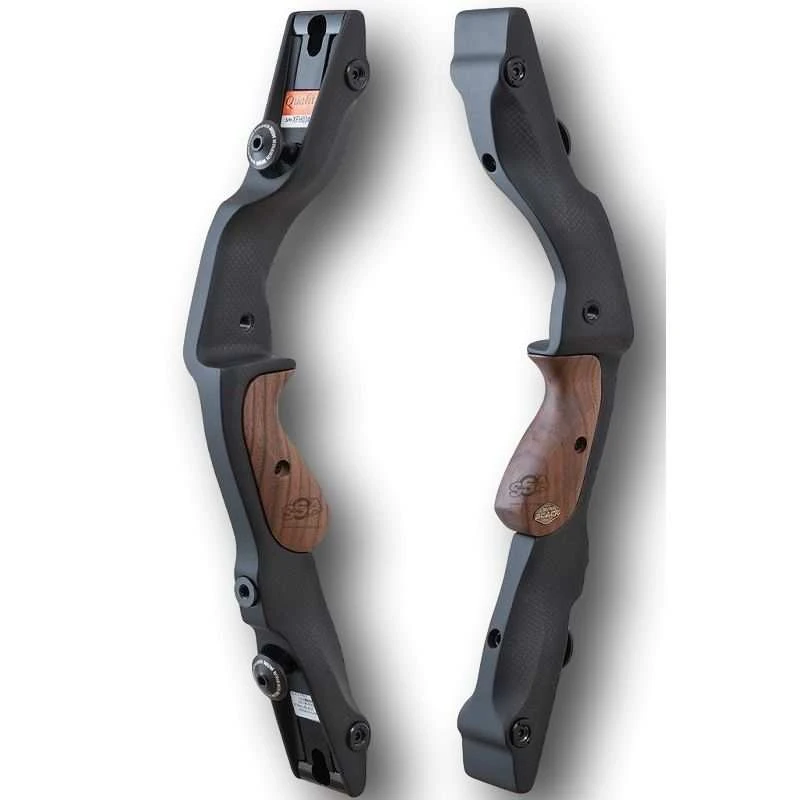 Win&Win à su fabriqué un arc avec les qualités combiné d’une poignée bois stable et la solidité d’une poignée usiné.