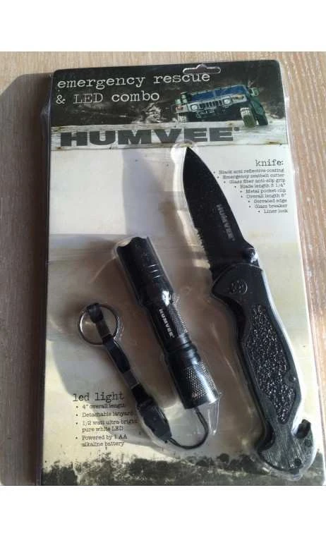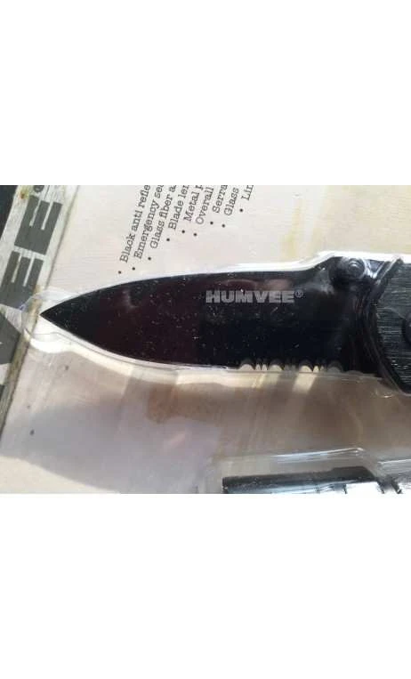 Couteau de chasse, pêche, loisir avec revêtement antireflet noir sur la lame, d’un coupeur de ceinture de sécurité en cas d’urgence, La fibre de verre anti-dérapant sur le manche. Longueur de la lame 3 1/4 » avec un bord dentelé , longueur totale 8 » ,clip de poche en métal, Briseur de glace en bout de poignée. Vendu avec lampe LED de » avvec sangle détachable, vendu sans pile.