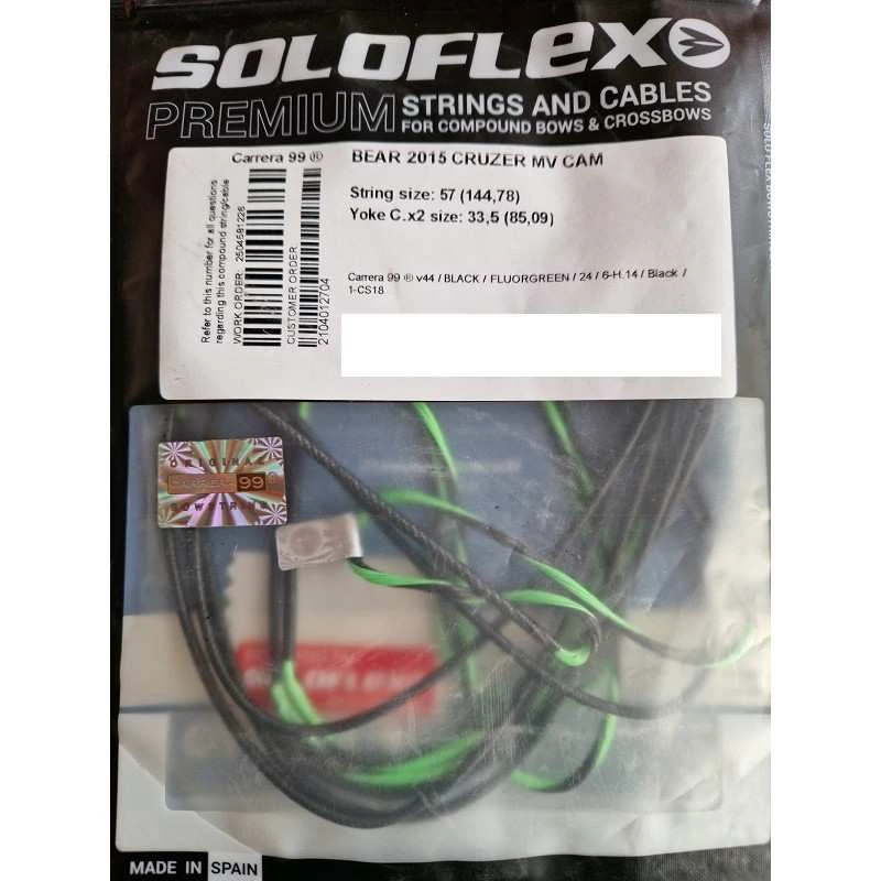 Set de câble Yoke et corde FLEX ARCHERY pour arc à poulies CRUZER de 2015 BEAR ARCHERY, couleur Vert fluo et noir en corde Carrera99.