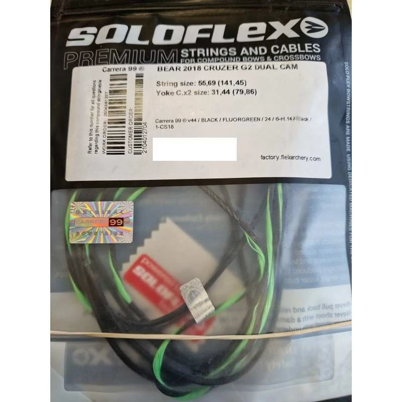 Set de câble Yoke et corde FLEX ARCHERY pour arc à poulies CRUZER G2 Dual Cam BEAR ARCHERY, couleur Vert fluo et noir en corde Carrera99.