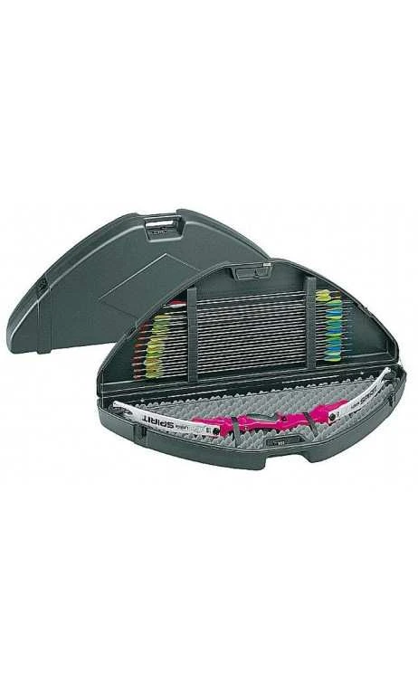 Boîtier en plastique dur pour arc et flèches composées, composites ou incurvées dans le couvercle, y compris serrure à combinaison centrale et serrures à clé latérales.